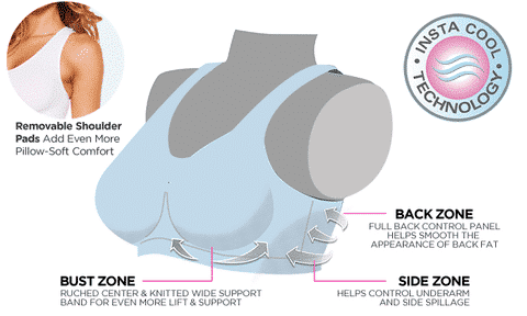 The design of 5D seamed cups, wide side wings, strong cushioned shoulder straps, and U-shape back panel ensures maximum support against sagging while smoothing back bulges and correcting armpit fats for a flattering silhouette.